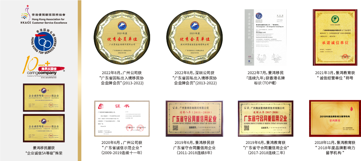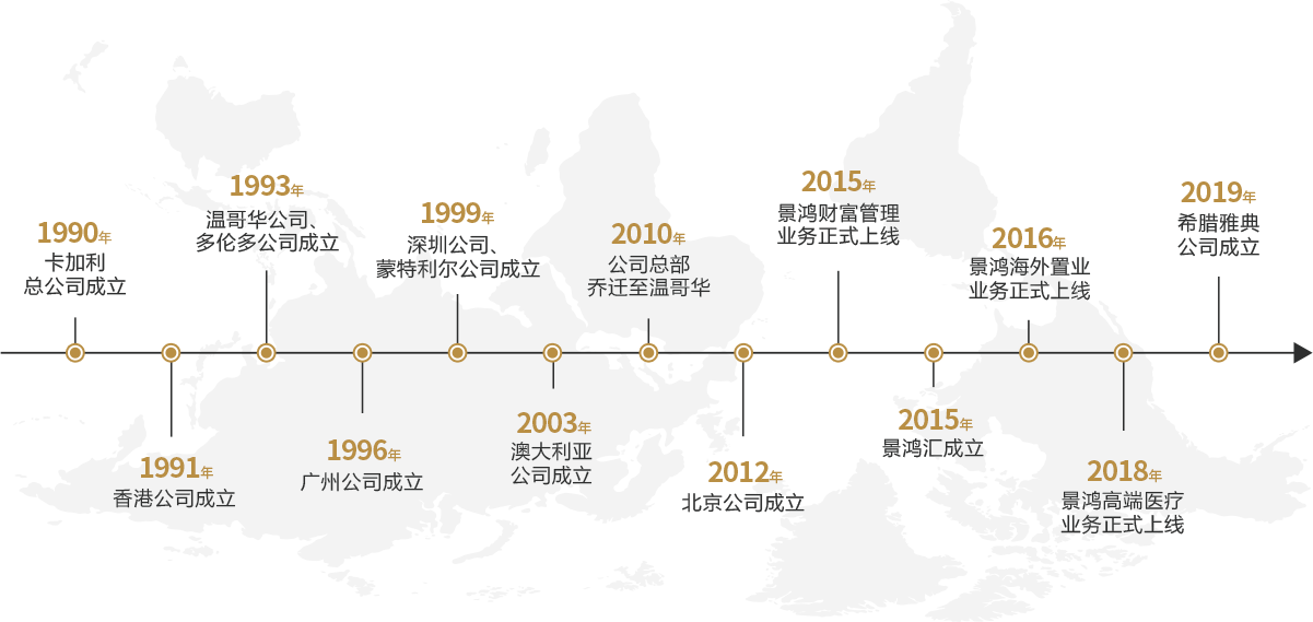 景鸿集团拥有经验丰富的国际服务网络,包括有景鸿移民、景鸿教育、景鸿汇等多个实力品牌,分支机构遍布中国香港、广州、深圳、北京;加拿大温哥华、多伦多、蒙特利尔以及澳洲、希腊等国家及地区。